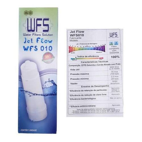 Filtro refil jet flow wfs010 filtro de água ap230 10pol Refil para filtro jet flow wfs 010 compatível com o filtro de água/purificador de agua para torneiras das marcas 3m, aqualar e cuno do modelo ap230 10' polegadas .