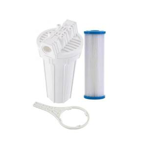Carcaça de 10 x 2,5 Elemento filtrante de fibra de polipropileno lavável de 30 micras; O elemento filtrante deve ser lavado periodicamente, de acordo com a qualidade da água a ser filtrada.