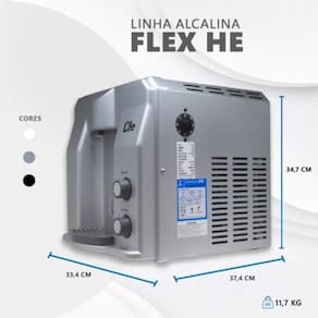 O purificador de Água refrigerado de alta performance Flex HE é responsável por deixar a Água com pH alcalino entre 8.5 e 9.5 (quando o pH de entrada é 7) com baixo teor de cloro e flúor. Além disso, seu sistema de filtragem garante 8 etapas de purificação da Água. Filtra, purifica, refrigera, mata as bactérias, elimina os metais tóxicos, remove impurezas e materiais orgânicos, preserva os sais minerais e alcaliniza.