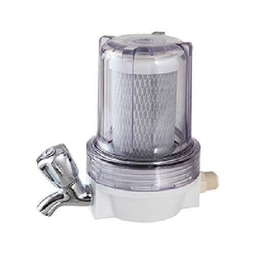 Filtro para torneira 5", com torneira de metal cromada inclusa. Aplicações e recomendações de uso do Filtro POU125 Bebedouros, Sob pias, Sobre pias, Maquinas de gelo, Maquinas de café.Vantagens e benefícios do Filtro POU125 - Alta capacidade de redução de cloro, - Fácil instalação, - Reduz gostos e odores presentes na água, - Retém sedimentos e partículas sólidas, - Adaptável à encanamentos com conexões com rosca de 1/2, - Não utiliza energia elétrica, - Não necessita limpeza e/ou retrolavagem.Instalação do aparelho: POU Ponto de Uso Pressão de operação: Máxima 40mca/Mínima 2 mcaTemperatura de operação: Máxima 40 /Mínima 1 grauVazão nominal: 90 Litros/horaElemento filtrante: BBIE125/5Composição básica: Sangel e Carvão ativadoFiltro completo: Carcaça + refil + manual de instruções + níple de 1/2" + torneira de metal cromada.