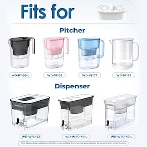 - Nova versão: este filtro de água Waterdrop combina com todos os sistemas de filtragem Waterdrop Pitcher e Dispensador, incluindo os modelos WD-WFD-22, WD-WFD-40, WD-WFD-40-L, WD-PT-07, WD-PT-05, WD-PT-05-L, WD-PT-04, WD-PT-61, WD-PT-72. Adota tecnologias avançadas e novos designs para realizar atualizações abrangentes e funções de escalonamento.