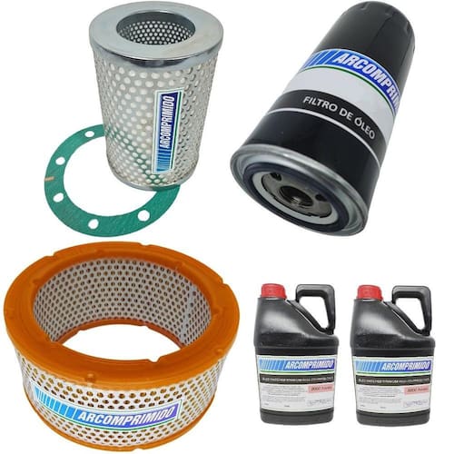 Kit de Filtros e 10L de Óleo Sintético 8000hrs Similares para o Compressor Rotativo de Parafuso Chiaperini Copa R15. O kit contém: