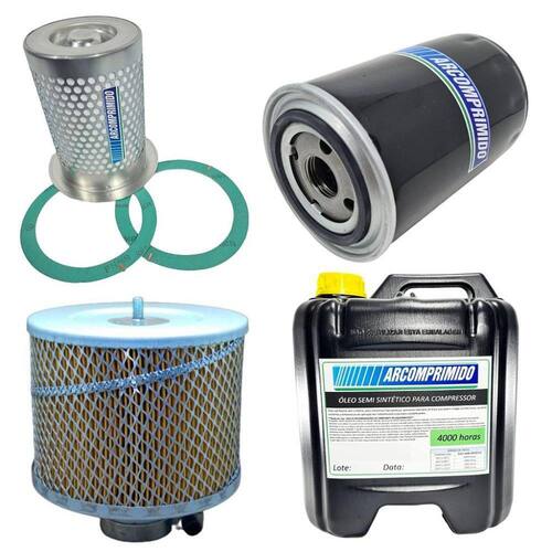 Kit de Filtros e 20L de Óleo 4000hrs Similares para Compressor Techto Supreme SD20. O kit contém: * 01 Filtro Separador de Ar e Óleo * 01 Filtro de Óleo * 01 filtro de Ar * 20L de Óleo Semi Sintético 4000hrs