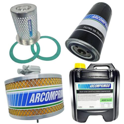 Kit de Filtros e 20L de Óleo 4000hrs Similares para Compressor Techto Supreme SD30. O kit contém: * 01 Filtro Separador de Ar e Óleo * 01 Filtro de Óleo * 01 filtro de Ar * 20L de Óleo Semi Sintético 4000hrs