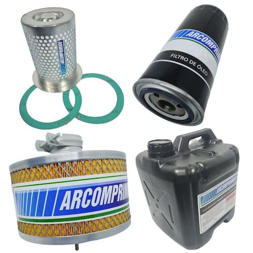 Kit de Filtros e 20L de Óleo Sintético Similares para Compressor Techto Supreme SD40. O kit contém: * 01 Filtro Separador de Ar e Óleo * 01 Filtro de Óleo * 01 filtro de Ar * 20L de Óleo Sintético 8000hrs