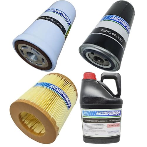 Kit de Filtros e 5L de Óleo Sintético 8000hrs Similares para Compressor da Atlas Copco G15 Série BQR. O kit contém: