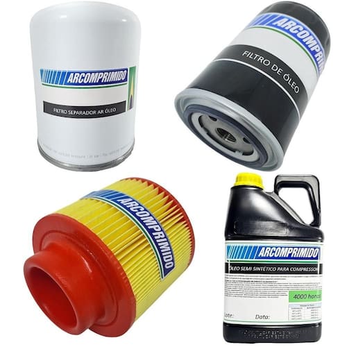 Kit com Filtros e 5L de Óleo Semi Sintético 4000hrs Similares para Compressor Compair L11. O kit contém: