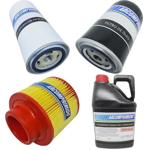 Kit com Filtros e 5L de Óleo Semi Sintético 8000hrs Similares para Compressor Compair L11. O kit contém: