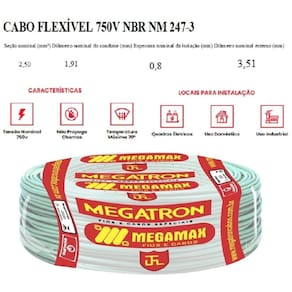 Fio Cabinho Flexível Megatron 2,5 mm Rolo com 100 m Verde Código Do Produto: BT404229RF - Fabricante: Megatron
