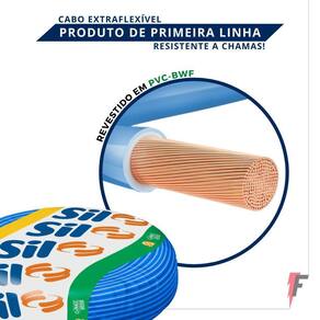 As matérias primas utilizadas nos produtos sil são adquiridas de fornecedores especializados e a transformação do cobre, com alto grau de pureza, e do composto isolante, específico para cada produto, faz com que a sil produza fios e cabos de altíssima qualidade.Todos os produtos são submetidos a um teste de tensão, com o intuito de assegurar uma isolação isenta de falhas, ainda que invisíveis numa inspeção visual.Cumpridas todas as etapas produtivas e de controle de qualidade, os produtos sil estão prontos para serem utilizados com toda segurança e tranquilidade em seus projetos.Aplicação: recomendado para instalações internas e fixas em circuitos de força, luz, comandos, sinalizações, etc... , em construções residenciais, comerciais e industriais. Por se tratar de um produto com boa flexibilidade, possui maior facilidade de instalação e manuseio.Condutor: fios de cobre, têmpera mole, classe 4 até a seção nominal 6mm e classe 5 a partir de 10mm (extraflexível) atendendo a norma abnt nm 280.Características técnicas:- tipo: cabinho flexível - marca: sil- bitola: 4,00 mm- comprimento: 100 metros- isolação: pvc tipo bwf- tensão nominal: 750v