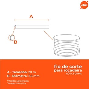 1 Fio De Corte Para Roçadeira Quadrado 2.6mm 20 Metros Nova Forma
