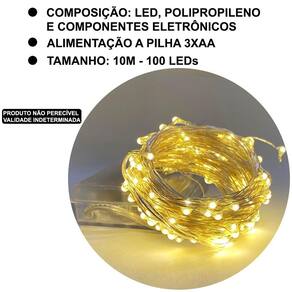 Esse produto funciona com 3 pilhas AA, o que significa que você não precisa se preocupar com tomadas. Sua decoração fica livre para ser feita onde quiser. E para facilitar ainda mais, o fio de fada já vem com 100 leds distribuídos ao longo dos 10 metros.