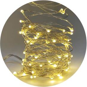 Especificações: - Cor: Branco-quente - Material: Led, polipropileno e componentes eletrônicos - Alimentação: 3 pilhas AA não inclusas - Tamanho: 10 metros - Quantidade de leds: 100 leds - Peso: 0,60g - Origem: China - Marca: Wincy Casa