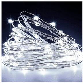1 Fio Fada 30 Lâmpadas Cordão Luz LED Branco 3 Metros Á Pilha