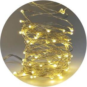 Fio de fada cordão fairy light 100led's branco quente 10mNosso fairy light mais conhecido como fio de fada, possui um lindo led branco-quente que é incrível para iluminar ambientes internos, como o quarto ou a sala. Ele funciona com 3 pilhas, então não precisa se preocupar com tomadas, a decoração é livre decore seu mural de fotos, seu jantar romântico e até mesmo, combinado com um memory board mural de fotos para abrilhantar ainda mais sua decoração. Este fio de fada deixará qualquer ambiente com aquele clima de quarto das blogueiras.- possui 10 metros com 100 led's distribuídos;- ideal para decorar seus ambientes favoritos;- excelente para presentear um amigo.Especificações:- cor: branco-quente- material: led, polipropileno e componentes eletrônicos- tipo de alimentação: 3 pilhas aa não inclusas - tamanho: 10 metros- quantidade de led's: 100 led's- peso produto : 0,60g- volume: 01 peça- origem: china- marca: wincy casaAdvertências- não instale em árvores que tenham arranjos, folhas ou galhos revestidos de metal ou metalizados;- não monte ou instale os fios de maneira que os mesmos possam ser danificados ou cortados;- apague-o quando sair de casa ou à noite.Itens inclusos:- 01 cordão fio de fada branco-quente 10mCód. Ref.- del50076