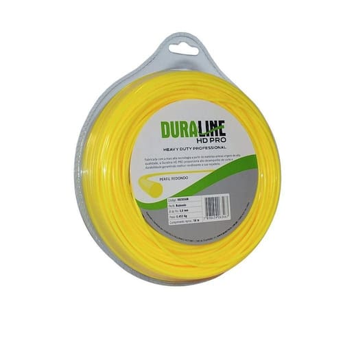 Fio De Nylon Redondo 3mm Para Roçadeira Com 56 Metros Fio de Nylon Redondo 3mm para Roçadeira com 56 Metros - Blister de fio de nylon Duraline HD Pro, para aparadores e roçadeiras. Fio de 56 metros de comprimento e perfil redondo de 3 mm. Desenvolvido com polímeros de alta qualidade e densidade, a linha Duraline HD PRO busca atender as principais características de flexibilidade, elasticidade e resistência à dureza e abrasão.