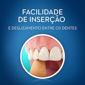 Essential Floss desliza suavemente entre os dentes e abaixo da linha da gengiva