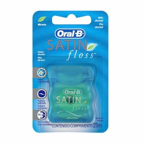 Fita Oral-B SATIN para uma verdadeira sensação de limpeza. Dá-lhe uma sensação diferente graças ao seu sabor refrescante a menta Com textura acetinada fácil de manusear Ajuda a remover detritos entre os dentes e a placa abaixo da linha da gengiva O uso da fita Oral-B SATIN de manhã ou à noite após a escovação ajudará a manter os dentes e gengivas saudáveis Fita dental comprimento 25 m
