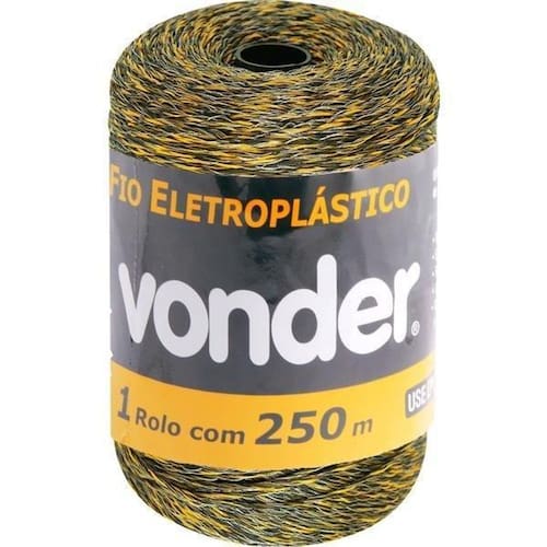 Fio Eletroplástico 250 Metros 15/6 - Vonder - Descrição do Produto: Aplicações e dicas de uso: Utilizado como cerca elétrica para cercamento de gados, ovelhas, porcos, entre outros animais Destaques e diferenciais: Composto por fios de monofilamento em plástico com tratamento UV e fios de aço inox, proporcionando excelente resistência à oxidação/corrosão. Características Gerais do Produto: Tamanho: 15X10X45cm 2,0Kg : 3 meses Ean: 7893946501884