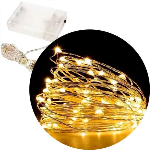1 Pisca Fio de Fada 30 Lâmpadas LEDs Amarelo de 3 Metros