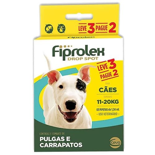 Fiprolex cães 11 a 20kg leve 3 pague 2 - ceva , totalizando 3 pipetas. Descrição: Controle de pulgas e carrapatos. Indicação: Cães 11 a 20kg. Apresentação: Embalagem com 03 pipetas de 1,34ml. Marca: Ceva. Uso veterinário. Licenciado no ministério da agricultura sob o nº 8.620 em 04/06/2003. Orientações: Conservar em local seco, fresco, ao abrigo da luz solar e fora do alcance de crianças e animais. Armazenar entre 15°c a 30°c. Não guardar o produto junto de alimentos, bebidas, produtos domésticos. Consulte sempre o veterinário de sua confiança para o uso apropriado deste produto. Leia a bula ou informações descritas na embalagem. Foto meramente ilustrativa. Descrição sob responsabilidade do fabricante, retirada diretamente do site do fabricante ou do próprio rótulo do produto. Caso haja diferença entre as informações aqui apresentadas e rótulo ou bula, prevalecerá sempre a informação do rótulo ou bula que acompanha o produto. Ean: 7898043433717