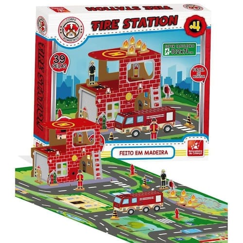 O Corpo de Bombeiros Fire Station proporciona uma experiência única para as crianças com toda sua variedade de elementos que compõe o brinquedo, entre eles: 1 um super tabuleiro 102 x 71 cm montado , 1 um manual de montagem e 39 peças para montar e se divertir à beça Através dos encaixes em suas peças, possibilita uma montagem fácil e prática, desenvolvendo assim a imaginação, a criatividade, a coordenação motora, o pensamento lógico e a noção de espaço.