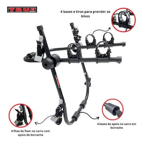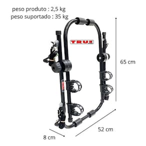 Esse suporte é ideal para quem busca uma solução prática e segura para transportar suas bicicletas, mantendo o veículo protegido graças aos apoios de borracha e ganchos emborrachados.