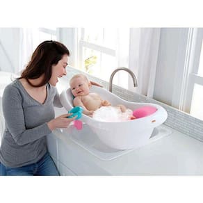 À medida que seu bebê cresce de recém-nascido para criança pequena, a hora do banho evolui para uma verdadeira festa aquática. A banheira 4 em 1 Sling n Seat da Fisher-Price é completa: conta com um porta-bebê de malha macia desenvolvido para o primeiro banho do bebê e um assento de apoio para bebês que adoram balançar, além de uma espaçosa banheira com concha e garrafa para brincar na água. Esta banheira para bebê tem quatro estágios que se adaptam do recém-nascido a criança e todas as fases entre uma e outra.
