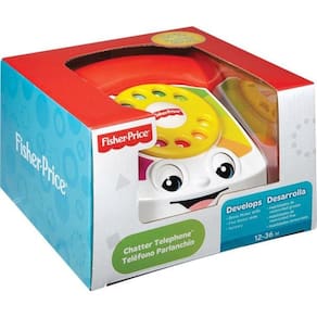 Diga "alô" para o novo telefone da Fisher-Price®! Este brinquedo clássico agora tem um design mais moderno, mas continua divertido e simpático como sempre - com seu rostinho fofo, disco que gira, sons de telefone e olhos que sobem e descem conforme o bebê o puxa.