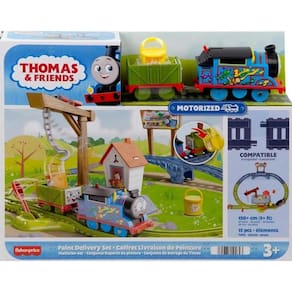 Fisher-Price Thomas e Seus Amigos Trem de Entrega de TintasO Trem de Entrega de Tintas Thomas e Seus Amigos da Fisher-Price é um brinquedo divertido e educativo que permite que as crianças recriem as aventuras emocionantes de Thomas e seus amigos. Este conjunto motorizado inclui uma locomotiva Thomas, duas latas de tinta, uma ponte e trilhos.Recursos Destacados:Locomotiva motorizada Thomas: A locomotiva Thomas é motorizada e corre pelos trilhos, puxando as latas de tinta.Latas de tinta que balançam: As latas de tinta balançam enquanto Thomas cruza a ponte, adicionando um toque de emoção à brincadeira.Ponte que desmorona: A ponte desmorona quando Thomas passa por cima dela, liberando as latas de tinta e criando uma cena divertida.Trilhos: O conjunto inclui trilhos para que as crianças possam construir diferentes layouts de pistas.Compatível com outros conjuntos: O Trem de Entrega de Tintas é compatível com outros conjuntos Thomas e Seus Amigos, permitindo que as crianças expandam seu mundo ferroviário.Incentiva a brincadeira criativa: incentiva a brincadeira criativa e imaginativa, com infinitas possibilidades de histórias para contar.Especificações Técnicas:Idade recomendada: A partir de 3 anosPilhas: 2 pilhas AAA (não inclusas)Dimensões: 30 x 6 x 23 cmO que vem na caixa:1 Locomotiva motorizada Thomas2 Latas de tinta1 PonteTrilhos1 Manual de instruções