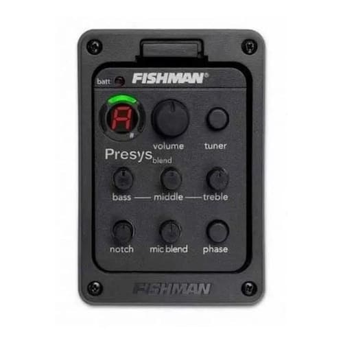 Transforme seu violão com o som e a praticidade do Fishman Presys 301 Capture a alma da sua música com clareza e afine com precisão, tudo em um só dispositivo. Principais Benefícios: Som : Pré-amplificador Fishman com captação de rastilho e microfone interno para um timbre rico e autêntico. Afinador Integrado: Afinador cromático preciso com display LED, para você nunca perder a afinação. Controle Total: Ajuste de Volume, Graves, Médios e Agudos para moldar seu som perfeitamente. Versatilidade Incrível: Ideal para violões aço e nylon , violas, baixos acústicos, ukuleles, cavaquinhos, banjos e mais. Instalação Simplificada: Sistema plug and play, sem necessidade de solda, com captador Sonicore pré-fio. Praticidade Inigualável: Indicador de bateria fraca e fácil acesso ao compartimento da bateria 9V. Anti-feedback: Controle onboard para eliminar ruídos indesejados. Especificações Técnicas Detalhadas: Modelo: Fishman Presys 301 Captação: Rastilho e Microfone Interno com controle de nível de mistura. Controles: Volume, Bass, Mid, Treble, Botão de Fase. Afinador: Cromático com display LED. Jack de Saída: P10 já soldado no cabo . Alimentação: Bateria 9V não inclusa . Vida Útil da Bateria: Aproximadamente 88 horas. Dimensões do Pré-amplificador: Interno: 46.5mm x 78.5mm Externo: 81.5mm x 55mm. Distância entre parafusos: 45.3mm x 70.0mm. Leve seu som para o próximo nível Adquira agora o Captador Fishman Presys 301 e experimente a diferença que um equipamento de qualidade pode fazer nas suas apresentações e gravações. Clique em Comprar e garanta já o seu