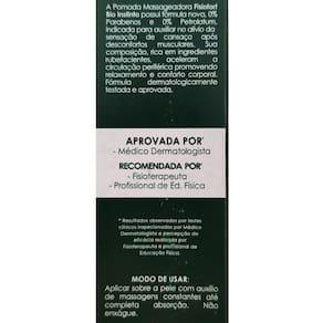 Fisiofort Pomada Massageadora 150g Bio Instinto Composição: Aqua, Arnica Montana Flower Extract, BHT, Camphor, Carbomer, Chenopodium Ambrosioides Leaf/Stem Extract, Copaifera Reticulata Balsam Extract, Disodium EDTA, DMDM Hydantoin, Menthol, Methyl Salicylate, Methylisothiazolinone, Ozonized Turpentine, Polysorbate 80, Triethanolamine. Apresentação: Pote com 150g Modo de Usar: Aplicar Sobre a pele com auxílio de massagens constantes até completa absorção. Não enxágue. Conservação: Após aberto, manter a embalagem bem fechada e armazenar em local fresco, seco 15° a 25° e ao abrigo de luz. Produto lacrado para sua proteção. Não utilizar em caso de violação. Manter fora do alcance de crianças. Advertência: Gestantes, idosos, crianças, lactantes e pessoas que apresentam doenças ou alterações fisiológicas, somente devem consumir este produto sob orientação de nutricionista ou médico. Autorização M.S. 2.05121.7
