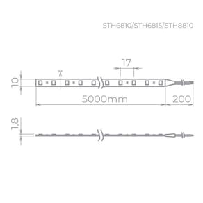 Características Gerais do Produto: • Referência: STH6815-27-IP65 • Potência: 12 W/m • Temperatura da cor: 2700k (Branco Quente) • Fluxo Luminoso: 1100 Lumens/M • Eficiência luminosa: 91 Lumens/W • IRC: 80 • Dimerizável: Sim • Tensão: 12 Vcc • Dimensões: 10mm x 5000mm • Especificação: 60 Leds SMD5050/m • Material: Polímeros, Cobre e Componentes eletrônicos • Peso: 180g • Vida Útil: 25.000h • Grau de Proteção: IP 65 • Garantia: 2 Anos