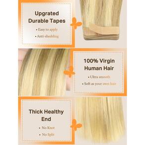 Fita de portas em extensões de cabelo humano Propósito da marca: Design de cabelo moderno e de alta qualidade para mulheres e meninas, deixe-os ter um cabelo bonito e manter um bom humor todos os dias Descrição do produto: 1. Tipo de extensões de cabelo: fita sem costura em extensões de cabelo humano. 2. Material do cabelo: 100% cabelo humano remy sem qualquer mistura. 3. Conjunto de cabelo: 2,5 g por peça, 50 g por pacote. Fita dupla face de 3,8 cm de largura. Recomendamos 1-2 pacotes para cabelos grossos, 2-3 pacotes para cabelos finos. 4. Comprimento do cabelo: 35,5 cm, 40,6 cm, 45,7 cm, 50,8 cm, 56 cm, disponível. 5. Textura: Reto, pode ser enrolado como quiser. 6. Tamanho da fita: 1 cm × 4 cm. 7. Adequado para qualquer ocasião: seja no dia a dia ou festa, casamento, Natal, etc., também é um bom presente para suas amigas 8. Cor do cabelo: o lindo desbotamento quente combina perfeitamente com a cor do seu cabelo, ombre ou destacado para você escolher. Método de cuidados com o cabelo 1. Lave o cabelo segurando suavemente, não esfregue o cabelo. A lavagem diária não é boa para suas extensões, especialmente quando você aplica o cabelo pela primeira vez. 2. Nunca use nenhum produto que contenha álcool ou etanol que possa danificar as extensões de cabelo e também desgastar o adesivo. Use condicionador sem sulfatos, bem como produtos de cabelo 100% naturais para lavar e manter as extensões de cabelo em boas condições. 3. Penteie da parte inferior até a raiz do cabelo. Penteie seu cabelo com um pente de dentes largos para evitar nós. 4. Durma com uma touca de seda ou compre uma fronha de seda para proteger o cabelo. 5. Bata o cabelo com uma toalha até que o cabelo esteja seco, é melhor secar naturalmente. - Cabelo de alta qualidade: Longa duração e reutilizável: extensões de cabelo humano 100% Remy. Pontas grossas e completas, aparência sedosa natural e toque macio, brilhante, sem emaranhados, sem queda. É igual ao nosso próprio cabelo, precisa de cuidados para durar 4 meses ou mais - 10 peças de extensões de cabelo Especificação e uso recomendado: 3,8 cm de largura, 25-66 cm estão disponíveis. 10-12 polegadas: 20 g/pacote, 35,6-45,7 cm: 25 g/pacote, 50,8-66 cm: 30 g/pacote. Recomendamos 1 pacote para destacar o cabelo, 2-3 pacotes para aumentar o volume do cabelo, 4-5 pacotes para cabeça inteira - Fita invisível transparente, durável e substituível: fita dupla face de 1 x 4 cm, hipoalergênica, sem queda de cabelo, não cai facilmente. A fita é leve, fácil de instalar/remover, está perfeitamente presa ao seu couro cabeludo sem qualquer desconforto - Perfeito para qualquer ocasião: escolha entre uma ampla variedade de cores populares, incluindo balayage, ombre e cores lisas, você certamente encontrará o tom perfeito para combinar com seu cabelo natural. Boa escolha para festa, casamento, escritório, aniversário, trabalho diário - Serviço de correspondência de cores: Devido à luz e ao monitor, a cor exata pode ser ligeiramente diferente da cor mostrada na imagem. Se você não tiver certeza sobre a cor das extensões de cabelo, e forneceremos um serviço de correspondência de cores.