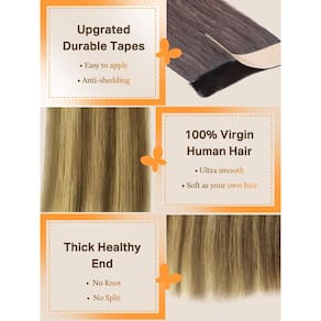 Fita de portas em extensões de cabelo humano Propósito da marca: Design de cabelo moderno e de alta qualidade para mulheres e meninas, deixe-os ter um cabelo bonito e manter um bom humor todos os dias Descrição do produto: 1. Tipo de extensões de cabelo: fita sem costura em extensões de cabelo humano. 2. Material do cabelo: 100% cabelo humano remy sem qualquer mistura. 3. Conjunto de cabelo: 2,5 g por peça, 50 g por pacote. Fita dupla face de 3,8 cm de largura. Recomendamos 1-2 pacotes para cabelos grossos, 2-3 pacotes para cabelos finos. 4. Comprimento do cabelo: 35,5 cm, 40,6 cm, 45,7 cm, 50,8 cm, 56 cm, disponível. 5. Textura: Reto, pode ser enrolado como quiser. 6. Tamanho da fita: 1 cm × 4 cm. 7. Adequado para qualquer ocasião: seja no dia a dia ou festa, casamento, Natal, etc., também é um bom presente para suas amigas 8. Cor do cabelo: o lindo desbotamento quente combina perfeitamente com a cor do seu cabelo, ombre ou destacado para você escolher. Método de cuidados com o cabelo 1. Lave o cabelo segurando suavemente, não esfregue o cabelo. A lavagem diária não é boa para suas extensões, especialmente quando você aplica o cabelo pela primeira vez. 2. Nunca use nenhum produto que contenha álcool ou etanol que possa danificar as extensões de cabelo e também desgastar o adesivo. Use condicionador sem sulfatos, bem como produtos de cabelo 100% naturais para lavar e manter as extensões de cabelo em boas condições. 3. Penteie da parte inferior até a raiz do cabelo. Penteie seu cabelo com um pente de dentes largos para evitar nós. 4. Durma com uma touca de seda ou compre uma fronha de seda para proteger o cabelo. 5. Bata o cabelo com uma toalha até que o cabelo esteja seco, é melhor secar naturalmente. - Cabelo de alta qualidade: Longa duração e reutilizável: extensões de cabelo humano 100% Remy. Pontas grossas e completas, aparência sedosa natural e toque macio, brilhante, sem emaranhados, sem queda. É igual ao nosso próprio cabelo, precisa de cuidados para durar 4 meses ou mais - Especificação de extensão de cabelo de 40 peças e uso recomendado: 3,8 cm de largura, 25 a 66 cm disponíveis. 25.4 cm: 60 g/pacote, 30.5 cm: 80 g/pacote, 35.6-61.0 cm: 100 g/pacote, 66.0 cm: 120 g/pacote. Recomendamos 1 pacote para destacar o cabelo, 2-3 pacotes para aumentar o volume do cabelo, 4-5 pacotes para cabeça inteira - Fita invisível transparente, durável e substituível: fita dupla face de 1 x 4 cm, hipoalergênica, sem queda de cabelo, não cai facilmente. A fita é leve, fácil de instalar/remover, está perfeitamente presa ao seu couro cabeludo sem qualquer desconforto - Perfeito para qualquer ocasião: escolha entre uma ampla variedade de cores populares, incluindo balayage, ombre e cores lisas, você certamente encontrará o tom perfeito para combinar com seu cabelo natural. Boa escolha para festa, casamento, escritório, aniversário, trabalho diário - Serviço de correspondência de cores: Devido à luz e ao monitor, a cor exata pode ser ligeiramente diferente da cor mostrada na imagem. Se você não tiver certeza sobre a cor das extensões de cabelo, e forneceremos um serviço de correspondência de cores.