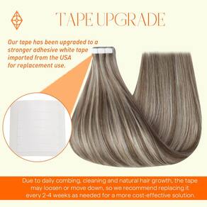 Extensões de cabelo Ombre Balayage Tape in Hair é o símbolo da Full Shine Hair. Se você está cansado da cor pura básica, escolha a cor Ombre Balayage é uma escolha correta, experimente! Detalhes do produto: Material do cabelo: cabelo humano real Textura: Liso e tem uma onda natural quando molhado ou deixado para secar ao ar livre ou difuso. Fita: Fita branca americana Tamanho da fita: 0,8 cm x 4 cm Conjunto: 2,5 g/peça, 20 peças/pacote, 50 g/pacote Aviso antes de fazer o pedido 1. Quantidade necessária: 150-250 gramas, 3-5 pacotes são recomendados para toda a cabeça. Se você tiver cabelo curto, reduza 1 pacote. 2. Sobre o estilo: nossas extensões de cabelo com fita humana são exatamente como o seu próprio cabelo e podem ser modeladas, enroladas ou alisadas conforme desejado. O DIY diário reduzirá a vida útil das fitas, use mais nutrição. 3. Sobre a cor: nossa fita de cabelo pode ser mais escura, mas não mais clara. Sempre teste um pequeno pedaço quando você tingir. 4. Sobre a lavagem: lave seu próprio cabelo sem condicionador quando for a primeira vez para aplicar em . Não lave o cabelo pelo menos 72 horas após a fixação, a lavagem diária não é boa para suas extensões. Use xampu e condicionador sem sulfato no cabelo 5. Cuidados: sugerimos que você use o óleo para reviver o cabelo seco; dormir com uma touca de seda ou compre uma fronha de seda para proteger o cabelo. 6. Sobre o uso: O cabelo pode ser reaproveitado com fita de substituição. Sugerimos ajustar a fita a cada 2-5 semanas para manter o cabelo bem. Encontre beleza e confiança com Full Shine Hair. - Sobre a instalação: o sanduíche é uma boa maneira, as duas peças devem ser alinhadas, não adicione muito cabelo no meio, ou ele cairá; você pode cortar suavemente as fitas uma vez com um alisador de cabelo, não aqueça a fita usando temperaturas excessivamente altas - Aparência natural: extensões de cabelo com fita adesiva podem adicionar estilo e volume ao seu cabelo com resultados naturais e discretos; ao escolher a cor que se adapta ao seu tom de cabelo, você pode desfrutar de cabelos mais cheios sem que ninguém perceba que você está usando extensões de cabelo - Disponível em vários tons: extensões de cabelo humano com fita adesiva oferecem muitos tons diferentes, balayage e ombré e muitas cores puras; você também pode criar sua mistura preferida usando dois ou três tons diferentes para obter um visual natural - Dupla face, invisível e substituível: como eles são muito leves e pegajosos o suficiente, eles se unem bem ao seu cabelo real sem qualquer desconforto. O uso adequado não danificará seu couro cabeludo e não causará nenhum desconforto. Você pode usar um removedor de adesivo ao remover - Como desembaraçar: nunca durma com extensões de cabelo molhado; sempre certifique-se de que o cabelo esteja seco e puxado para cima; use um pente de dentes largos nas pontas do cabelo, alise o cabelo, aplique azeite de oliva. Também pode ser utilizado com spray desembaraçante - Mais opções de penteado: se você quiser experimentar um novo visual, as extensões de cabelo com fita Full Shine podem ajudá-lo a alcançar seus objetivos de cabelo desejados; já que são cabelos humanos reais, que podem ser lavados, fortalecidos e enrolados usando um alisador - Uso recomendado: para cabelos grossos, 1-2 pacotes para aumentar o peso e 3-4 pacotes para aumentar o comprimento; para cabelos finos, 3-4 pacotes para aumentar o peso e 1-2 pacotes para aumentar o comprimento; você só precisará visitar o salão a cada 3 a 6 semanas após as extensões estarem em - Menos manutenção e antes da instalação: ao contrário de outros métodos, as extensões de cabelo com fita adesiva exigem menos manutenção; lave sua fita em extensões e seque com secador, não use condicionador ou óleo antes da instalação; é melhor você ir a um salão para instalar - Após a instalação: não lave a fita adesiva no cabelo em 48 horas, sugerimos que você use um condicionador melhor para cuidados profundos; nunca coloque o condicionador nas raízes do seu cabelo de qualquer maneira; isso pode fazer com que suas extensões de cabelo escorreguem
