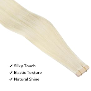 HOTBANANA Fita Remy em extensões de cabelo humano, sem emaranhamento, sem queda, pode ser permanente e tingida, você pode fazer qualquer penteado que quiser. A fita nas extensões de cabelo é leve e confortável, sem pressão, fácil de instalar e remover, perfeitamente fixada ao couro cabeludo sem qualquer desconforto ou dano ao cabelo. A fita de cabelo humano em extensões deixa seu cabelo mais cheio e saudável. Fácil de criar cores de cabelo modernas sem danificar seu cabelo natural. Aumente o comprimento sem esforço para alcançar o penteado desejado. O comprimento da fita HoTBANA nas extensões de cabelo é de 25 a 66 cm, textura: Liso.