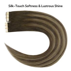 HOTBANANA Fita Remy em extensões de cabelo humano, sem emaranhamento, sem queda, pode ser permanente e tingida, você pode fazer qualquer penteado que quiser. A fita nas extensões de cabelo é leve e confortável, sem pressão, fácil de instalar e remover, perfeitamente fixada ao couro cabeludo sem qualquer desconforto ou dano ao cabelo. A fita de cabelo humano em extensões deixa seu cabelo mais cheio e saudável. Fácil de criar cores de cabelo modernas sem danificar seu cabelo natural. Aumente o comprimento sem esforço para alcançar o penteado desejado. O comprimento da fita HoTBANA nas extensões de cabelo é de 25 a 66 cm, textura: Liso. - Pacote generoso de 40 peças: 40 peças premium, com abas de fita de tamanho perfeito de 1 x 4 cm, um pacote oferece cobertura total, garantindo uma aplicação invisível e sem esforço e um visual naturalmente impecável - Longa duração e resistente: Base de fita com forte aderência e não sobrecarrega o couro cabeludo, ficará mais firme e durará mais se aquecer ligeiramente com ferro. Pode permanecer na sua cabeça por 4-6 semanas, fácil de remover com removedor sem danificar o cabelo - Cabelo humano real de alta qualidade: a HoTBANANA está comprometida em fornecer a você a melhor experiência de uso. Cabelo humano real não danificado, confortável de usar, sem emaranhado. Pode ser tingido, enrolado, como seu próprio cabelo. Pode usar condicionador de cabelo para cuidar da extensão do cabelo - Segurança do material e confortável: a fita transparente é segura de usar, leve. A fita nas extensões de cabelo é ultramacia, pode se misturar perfeitamente com o seu próprio cabelo. Quando você usar nosso cabelo, você achará confortável o suficiente para esquecer de usar extensões de cabelo - para você escolher: nossas extensões de cabelo com fita vêm em mais de 20 tons de cores diferentes. Use o processo de tingimento tecnologicamente maduro para criar uma cor semelhante ao cabelo da maioria das pessoas. Você pode compartilhar fotos conosco, ajudaremos você a escolher a cor imediatamente