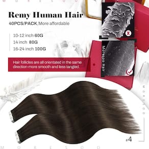 Se você quer extensões fáceis, sem bagunça e duráveis, sem esvaziar sua carteira, as extensões de cabelo com fita Moresoosão a melhor opção! Nossas extensões com fita são feitas com cabelo 100% humano e fita adesiva hipoalergênica premium resistente, segura e não prejudicial. Detalhes do cabelo: Material do cabelo: 100% cabelo humano remy Tamanho da fita: 0,8 cm x 4 cm Textura: liso, é normal um ondulado natural depois de lavar Como instalar as extensões de cabelo com fita: Passo 1: Use o pente para pegar uma fatia fina de extensões de cabelo natural da largura da sua fita. 2º Passo: Pressione o cabelo natural para baixo, na fita, deixando um espaço de 2,5-5 cm entre o couro cabeludo e a extensão. 3º Passo: Remova a segunda fita e coloque essa parte diretamente sobre a primeira, colando o cabelo natural entre o selo e a fita com uma chapinha para máxima aderência. 4º Passo: Repita na cabeça toda. Se não se sentir segura fazendo esse processo em casa, recomendamos enfaticamente que vá a um cabeleireiro profissional treinado para fazer extensões de cabelo com fita. Dicas: 1. Não penteie ou escove as extensões de cabelo enquanto os cabelos estiverem molhados. Nunca durma com extensões de cabelo molhadas. 2. Certifique-se de não lavar os seus cabelos pelo menos 3 dias após a aplicação, caso contrário, poderá causar queda. 3. A cada 4-6 semanas, suas extensões de cabelo precisarão ser reaplicadas para colocar as emendas mais próximas do couro cabelo e manter seus cabelos saudáveis. 4. Ao usar condicionador, aplique somente da metade até as pontas dos fios. Não aplique condicionador no seu couro cabeludo ao usar extensões de cabelo com fita 5. Extensões de cabelo com fita podem ser facilmente removidas com removedor e não danificam os cabelos - - - 1. Moresoo é uma marca registrada nos EUA, com o apoio de uma fábrica de alta qualidade, as extensões de cabelo com fita Moresoo podem atender não apenas a pessoas, mas proprietários de salões e atacadistas. - 2. - - - - - 4. As extensões de cabelo com fita de poliuretano são 100% cabelo humano remy. 2,5 gramas por peça, 40 peças de 100 gramas por embalagem, 1-2 conjuntos podem fazer uma cabeça inteira. As extensões de cabelo sem costura e macias com fita são as extensões de cabelo mais comuns. No entanto, há uma pequena diferença de cor, já que as fotos foram feitas por nós mesmos. - 5. Não embaraça, não cai, pode ser tratado e estilizado (lavagem, fortalecimento, cacheado, etc.), como o seu próprio cabelo. Porém, não recomendamos tintura ou descoloração, já que já foram submetidos a um processo químico. Recomendamos que a amostra de cores seja testada antes de colorir o conjunto completo, para garantir que o resultando seja o tom que você espera
