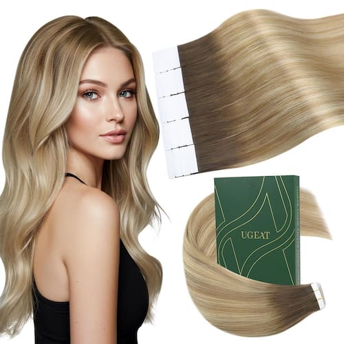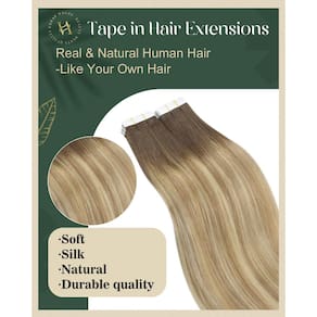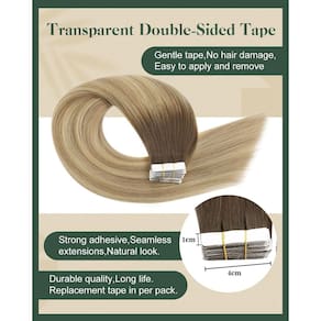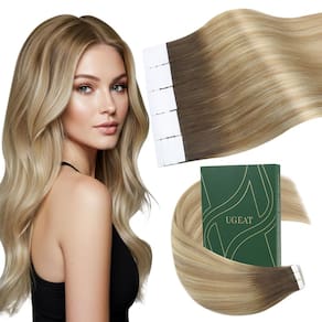 Extensões de cabelo Ugeat Tape in Hair Real Human Hair Fita Ugeat em extensões de cabelo humano traz uma nova experiência de beleza para pessoas de todo o mundo. Se você quiser estender seu cabelo ou quiser adicionar destaques sem danificar seu próprio cabelo, a fita de cabelo Ugeat Human em extensões é a sua escolha ideal. Fita Ugeat em extensões de cabelo humano é mais leve, mais confortável e fácil de usar. A fita invisível e a cor balayage natural fazem você se destacar da multidão. Como usar: Lave e seque o cabelo como de costume. (2) Pegue um fio fino de cabelo onde você precisa da extensão e levante-o. (3) Retire a fita na extensão do cabelo, prenda o fio de cabelo para cima e para baixo com duas fitas em pedaços de extensão de cabelo. (4) Pressione com os dedos por 5 a 10 segundos para consertá-lo ou use um grampo de aquecimento médio por 2 a 3 segundos. (5) Repita as etapas acima para obter resultados. Dicas: Penteie suavemente o cabelo antes de lavar e não use condicionador antes de usar fita adesiva nas extensões de cabelo. Penteie as extensões de cabelo com um pente de dentes largos e certifique-se de que as extensões de cabelo estejam secas. Comece a pentear de baixo para cima. Use xampu e condicionador suaves ao cuidar das extensões de cabelo, e recomenda-se secar naturalmente. Não lave o cabelo por 48 horas após usar extensões de cabelo com fita adesiva. Use removedor de fita profissional ao remover a fita nas extensões de cabelo e não as rasgue diretamente. - ?Leve e confortável?A fita de fita Ugeat nas extensões de cabelo é fina, tornando a estrutura de extensão de cabelo mais leve, mais confortável de usar e reduzindo a pressão no couro cabeludo. Não parecerá pesado mesmo se utilizado por um longo tempo. Tem bom conforto, você não precisa se preocupar com as extensões de cabelo caindo ou se sentindo desconfortável. - ?Fita forte?A fita de extensão de cabelo humano Ugeat usa fita dupla face transparente com forte poder adesivo e ligeira flexibilidade, o que pode garantir uma fusão natural e perfeita do seu cabelo natural e extensões de cabelo. Além disso, a fita forte pode evitar que as extensões de cabelo caiam facilmente. A fita é substituível e cada pacote vem com fita de substituição. - ?Fácil de instalar e remover?A fita Ugeat em extensões de cabelo humano vem com fitas pré-instaladas, sem necessidade de etapas complicadas. Se você tiver experiência com extensões de cabelo, você pode usá-lo em casa sozinho. Seja na vida diária, trabalho, festa, casamento, formatura, encontro romântico ou outras ocasiões especiais, pode ajudar você a mostrar seu estilo pessoal. - ?Material de extensões de cabelo?A fita Ugeat nas extensões de cabelo humano é feita de cabelo humano real para garantir que o cabelo tenha uma qualidade delicada, macia e naturalmente durável. As extensões de cabelo humano com fita adesiva são macias e suaves e podem ser estilizadas como seu próprio cabelo natural para atender às suas diferentes necessidades de moda. - ?Especificações?As extensões de cabelo com fita Ugeat contém 20 peças por pacote, e o tamanho do cabelo varia de 30 a 61 cm. Você pode escolher as dimensões perfeitas para o seu tipo de cabelo. Se você está buscando um volume de cabelo mais grosso ou experimentando um novo penteado, as extensões de cabelo com fita Ugeat podem facilmente atender às suas necessidades, trazendo confiança e beleza. Você pode usar de 2 a 3 pacotes para obter um efeito de cabeça completa.