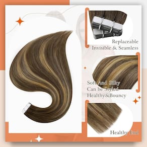 Extensões de cabelo com fita balayage ombré - o segredo de aumentar a confiança e o charme. Você também pode mudar as cores a cada 1-3 meses como uma estrela, lol Vantagens das extensões de cabelo com fita: 1- Invisível: como a fita é super fina e transparente, parece que o cabelo está crescendo a partir do seu próprio couro cabeludo. 2- Durável: uma vez que as extensões são bem aplicadas, elas podem durar de 1 a 3 meses. 3- Conveniente: Eles são fáceis de aplicar (podem ser feitos) e fáceis de tirar com removedor profissional. 4- Reutilizável: as extensões de cabelo com fita adesiva são reutilizáveis simplesmente substituindo as fitas. Característica: Fita hipoalergênica: pegajosa e forte o suficiente para segurar o cabelo sem danos à pele, também fácil de remover com removedor profissional. Design em camadas: especialmente projetado para imitar a camada de cabelo que cresce naturalmente, deixando as pontas mais finas do que a parte anterior, terá uma aparência mais natural. Atenção: se o seu cabelo já estiver muito fino no final e quiser adicionar uma plenitude ao final, ele pode não atender perfeitamente às suas necessidades devido a essa textura, a menos que você peça um comprimento maior. Especificações: Material: 100% cabelo humano real, macio e saltitante Quantidade: 20 peças para um pacote Peso: 50 g por pacote Vida útil do cabelo: 7-16 semanas (dependendo do uso e cuidado) Vida útil da cola: 4 semanas (depende do uso e cuidado) Uso: pode ser enrolado, alisado, tingido em uma cor mais escura ou tonificado por um colorista de cabelo profissional. Recomendamos usar apenas uma configuração de calor abaixo de 150 graus, pois qualquer ferro de temperatura mais alta pode danificar o cabelo. Dicas: Recomendamos 2-3 pacotes para adicionar volume e 3-4 pacotes para alongar o comprimento. - Fácil de usar: Para o método sanduíche, não aqueça a fita usando temperaturas excessivamente altas; as duas peças devem estar alinhadas; não adicione muito cabelo no meio, essas extensões vêm com uma fita adesiva pré-colada, tornando incrivelmente fácil de prendê-las; nenhuma ferramenta especial é necessária - Mistura sem costura e natural: fita em extensão se mistura perfeitamente com seu cabelo natural, criando um penteado de aparência natural e proporcionando uma aparência indetectável; adicione comprimento, volume ou destaque, extensão de fita dá a você a flexibilidade para criar um penteado sem fim - Fita forte: nossas extensões de cabelo são fita dupla face com cola forte, potentes e hipoalergênicas; podem ser regravadas e reaplicadas, são completamente invisíveis e parecem muito naturais; assim como seu próprio cabelo - enrolar, alisar, adequado para qualquer ocasião - Uso duradouro: essas extensões de cabelo leves com fita adesiva podem durar de 4 a 6 semanas com cuidados adequados. Eles são macios, sedosos e livres de emaranhados, proporcionando uma sensação realista e permitindo várias reaplicações. - Quantos pacotes você precisa: se o seu cabelo for grosso, 3-4 pacotes para adicionar o comprimento, 2-3 pacotes para adicionar a espessura; se o seu cabelo for fino, 3-4 pacotes para adicionar a espessura, 2-3 pacotes para adicionar o comprimento; recomendamos usar 3-4 pacotes de extensão de cabelo com fita para uma cabeça inteira - Versatilidade: as extensões de cabelo com fita adesiva fornecem uma solução instantânea para aqueles que querem mudar seu visual; você pode escolher entre uma variedade de cores, texturas e comprimentos para combinar com seu cabelo natural ou para criar um estilo novo e vibrante - Sem danos: quando aplicadas corretamente, as extensões de fita adesiva são menos prejudiciais ao seu cabelo natural do que outros métodos; elas distribuem o peso de forma mais uniforme, reduzindo a tensão e evitando quebras, ficam planas contra sua cabeça, tornando-as praticamente indetectáveis - Peso leve: em comparação com o clipe, as extensões de cabelo humano com fita adesiva são leves e não pesam o seu cabelo; não danificam o cabelo; não caem ou caem; se o seu cabelo estiver frágil ou danificado, eles podem ser muito eficazes - Proteção do cabelo: a exposição prolongada à luz solar pode fazer com que suas extensões desbotem ou percam o brilho; use um chapéu para proteger suas extensões; evite nadar em água salgada ou água clorada; pois pode danificar as extensões, fazendo com que elas sequem e embarace