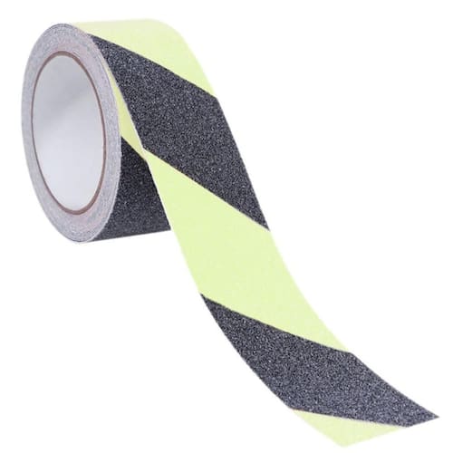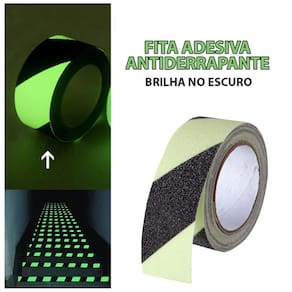 Esta fita antiderrapante preta, possui faixas verde fluorescente, ajudando a evitar acidentes e proporcionando maior segurança.