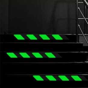 Esta fita antiderrapante preta, possui faixas verde fluorescente, ajudando a evitar acidentes e proporcionando maior segurança.