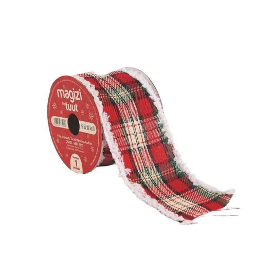 Dê um toque clássico e sofisticado à sua decoração natalina com esta linda fita aramada em tecido xadrez com borda nevada. Com 6,3cm de largura e 5 metros de comprimento, ela é perfeita para criar laços volumosos, adornar árvores de Natal, guirlandas, arranjos e embalagens de presentes.