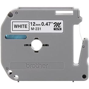 A Fita Brother M-231 tem 12mm de largura e imprime preto no fundo branco. A Brother M-231 é perfeita para sua organização em casa, na escola ou no escritório. Cada cartucho de fita Brother M-231 possui 8 metros de comprimento e são fáceis de trocar. Para Rotuladores Brother PT-70, PT-80, PT-90.