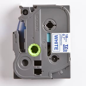 Fita para utilização nos rotuladores PTouch. A fita TZE 243 possui fundo branco com impressão em letra azul. Com 18mm de largura, é indicado para organização de ambientes e identificação de documentos e equipamentos.