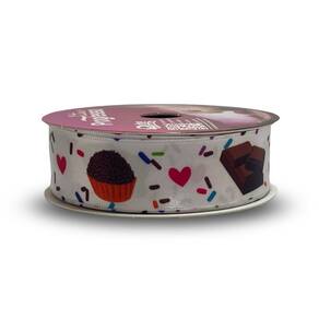 Descubra a beleza em cada detalhe com nossa Fita Cetim Estampada de 22mm. Perfeita para dar um toque especial a seus projetos de artesanato, embalagens de presentes, e especialmente para destacar seus deliciosos brigadeiros e barras de chocolate!