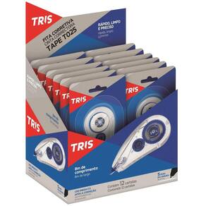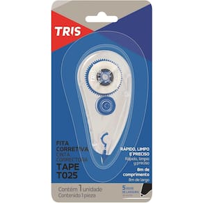 Fita Corretiva 5Mm X 8 Metros Tape T025 Tris Fita Corretiva de 8 metros de comprimento e 5 milímetros de largura, Tape T025 da Tris. Fácil aplicação, uso imediato após correção e a correção não aparece em fotocópias. Dispositivo para recolhimento e zona de manuseio antideslizante. Produto atóxico, indicado para crianças com mais de 36 meses. Marca: Tris Medidas: 5Mm X 8 Metros Modelo: Tape T025 Marca: Não Informado Ean: 7897476668109