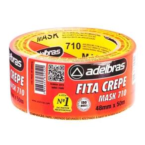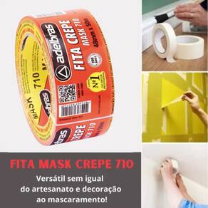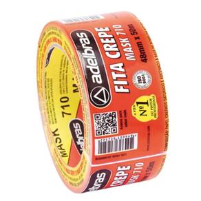 Fita crepe 48mmx50mt mask adelbras 710 crepe mask 710 para mascaramento de pinturas imobiliárias bricolagem fixações proteção enfaixamentos artesanato e uso industrial. Depois de aplicada não deixa resíduo na superfície. Deve ser removida em até 24 horas. Resistente a temperaturas de até 100°c. Composição: papel crepe saturado branco coberto com adesivo à base de borracha natural e resinas.
