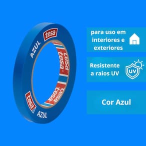 Ficha Técnica: Marca: Tesa Modelo: Fita Crepe Imobiliária Cor: Azul Comprimento: 40 metros Largura: 18 milímetros Uso: Interno e Externo Aplicação: Pintura, demarcação e acabamento